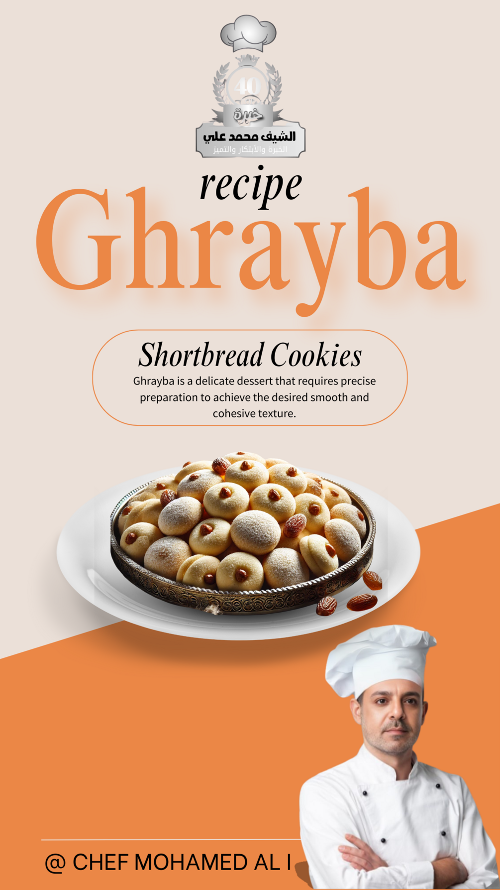 Do you want to make ghrayba with precision and professionalism? This recipe provides you with the perfect method to prepare ghrayba, achieving the smooth and cohesive texture everyone loves. The book includes detailed, professional steps to ensure the recipe's success every time. Learn how to prepare this unique dessert that combines simplicity with amazing taste in this comprehensive book. Get it now!"